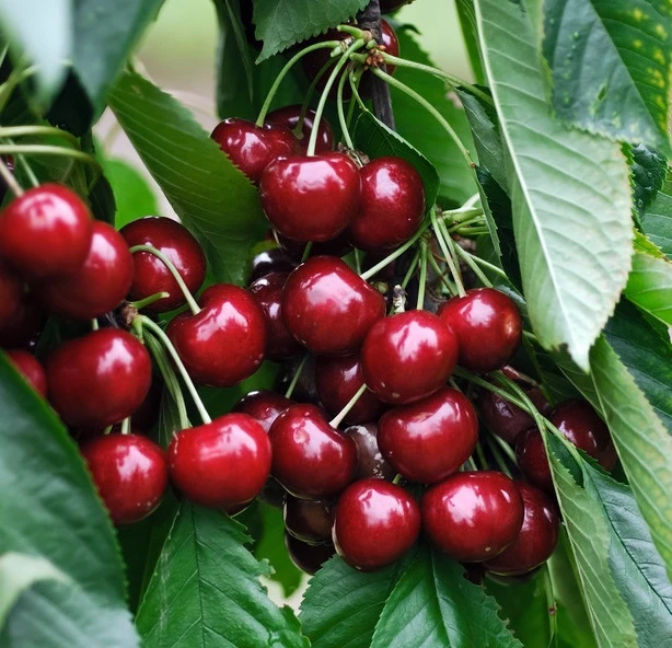 Frucht: Sehr große Frucht, dunkelrot mit hellen Sprenkeln. Relativ weiches Fruchtfleisch, sehr hoher Saftgehalt, süß. Reifezeit mittelfrüh, 5. Kirschenwoche.